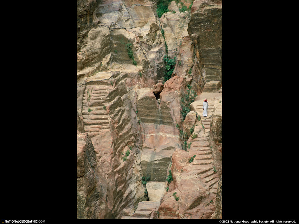 坐落于佩特拉城上游地区的绝壁,缎带般的水道、露台、水堤,以及水塔,向我们显示了纳巴泰人在掌控雨水方面的才干——在沙漠地区这是必不可少的技能,因为每年他们只能得到大约6英尺(15厘米)的雨水。一位熟悉纳巴泰人技艺的工程师说:“水文学在佩特拉城是无人察觉的美丽事物,这些人可以说绝对是天才。”
