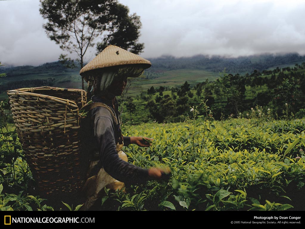 18世纪早期,荷兰殖民者开始在爪哇岛上创立茶叶种植园。茶叶一般通过手工采摘,这需要极高的技巧和细致的工作。茶叶拆摘工人,比如图中这位,必须知道准确的拆摘时间,以保证得到最好的质量。