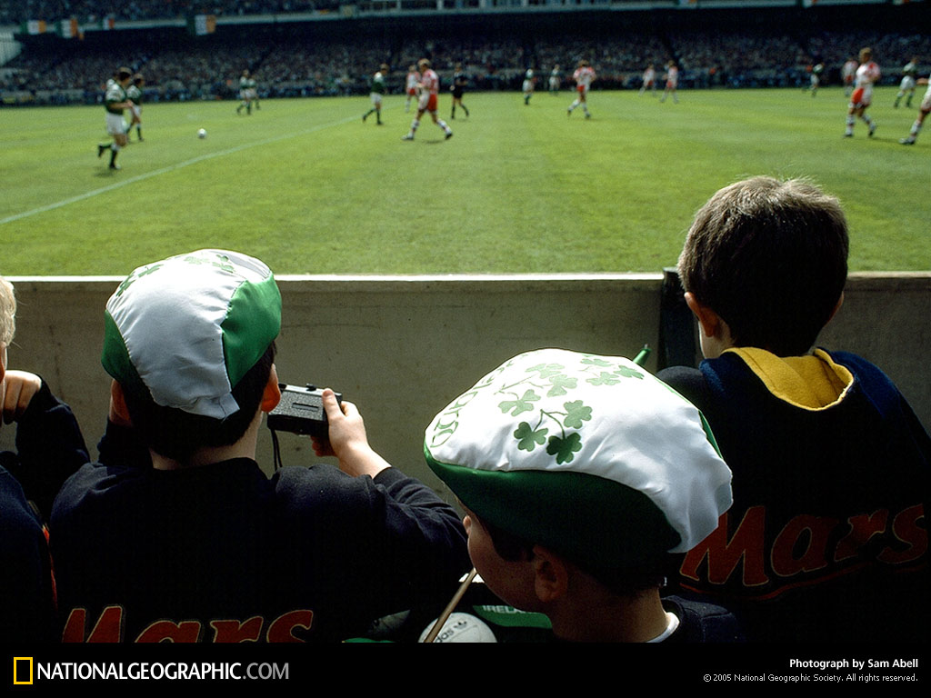 都柏林的孩子们为自己的地方球队加油助威。爱尔兰以其过半数25岁以下的人口,成为欧洲人口比率最为年轻的国家之一。