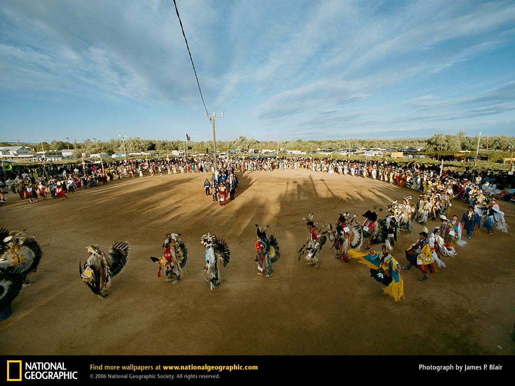 在一年一度的北美犹特人(美洲印第安人的一种)的帕瓦仪式上,舞者们在手举美国国旗的荣誉护卫周围围成圈。每年7月的第四个周末都会在犹他州达彻斯内堡举行仪式,以此颂扬美国土著人为美利坚合众国做出的贡献。