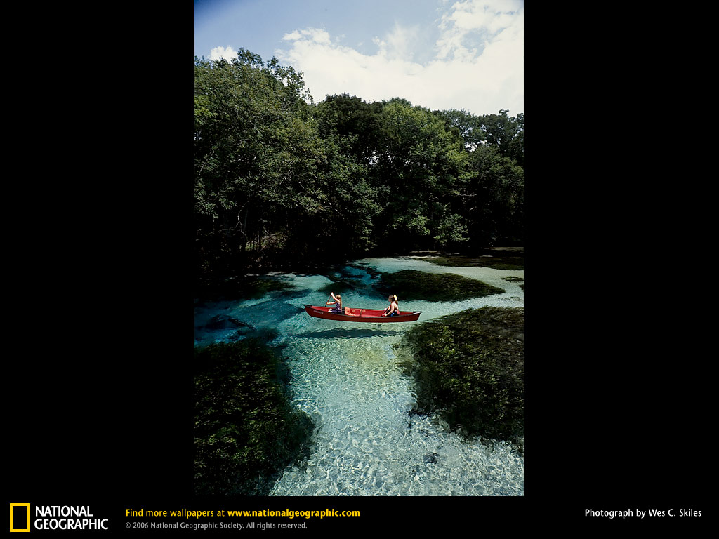 一叶轻舟静静滑过柏树泉那玻璃般的水面。尽管佛罗里达的泉源深藏地下,但泉水却流淌于地表,从而有了佛罗里达人长期以来都赞赏着的晶莹发光的池塘以及环绕着池塘同样招人喜爱的覆盖着湿滑苔藓的橡树。