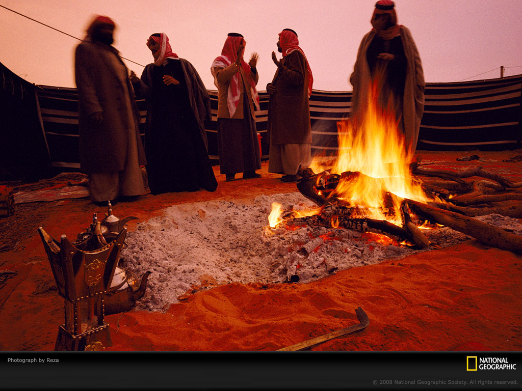 沙特阿拉伯显赫的酋长帐篷里,几位部落首领聚集在火堆旁。这类会议(也叫做议会)是该王国上上下下的风俗惯例。部落首领聚集于此可以是单纯的社交集会,如果主办者有权有势,这种集会也可以变成官方觐见。比如一个亿万资产的大老板申请一处建筑用地,紧接着骑骆驼放牧的贝多因部落族人就会以放牧地占用的问题来此集会寻求解决之道。
