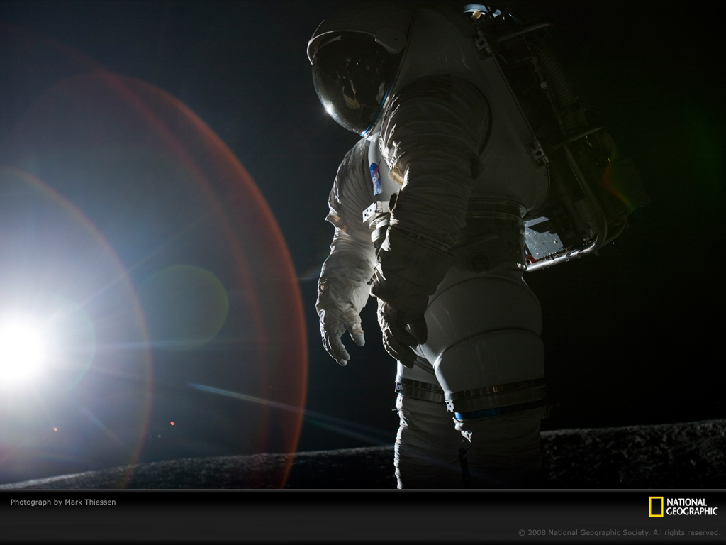 得克萨斯州休斯敦约翰逊空间中心月球模拟场馆内,一套太空服正在接受最大性能检验。这个模拟场馆拥有2亩(0.8英亩)由沙石和碎花岗岩做成的仿月球表面场地,方便技术人员进行系统测试以及太空构想规划,为美国国家航空及太空总署重返月球探索做准备。