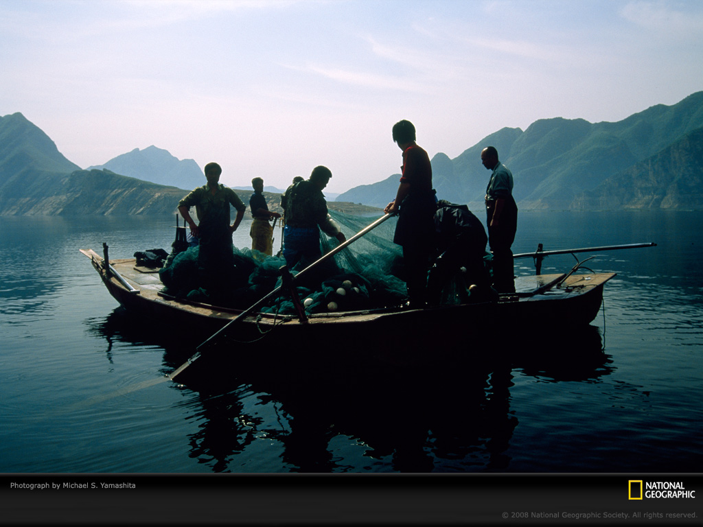 渔夫在河北潘家口水库准备撒网。1970年后半年滦河修筑水坝淹没了某段长城却造就了这个安静的湖。长城在此成为了水下构筑物并变成了人造礁石,吸引了渔夫们想要捕捞的鲤鱼在此繁衍生息。