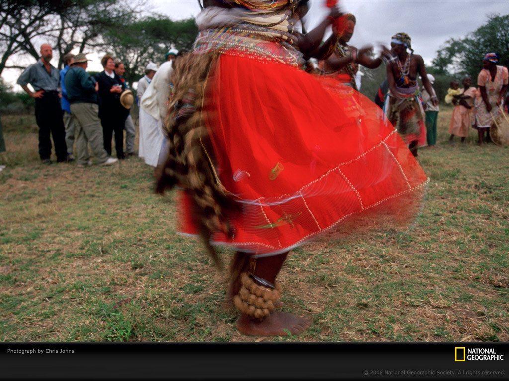 南非祖鲁人的舞蹈像是在讲故事一样,每一个动作蕴含着历史和文化的重要意义,这张照片是,在夸祖鲁-纳塔尔(KwaZulu-Natal)恩杜穆基姆保护区(the Ndumu Game Reserve)的一次表演上一个部落女人摇摆的深红色裙子。