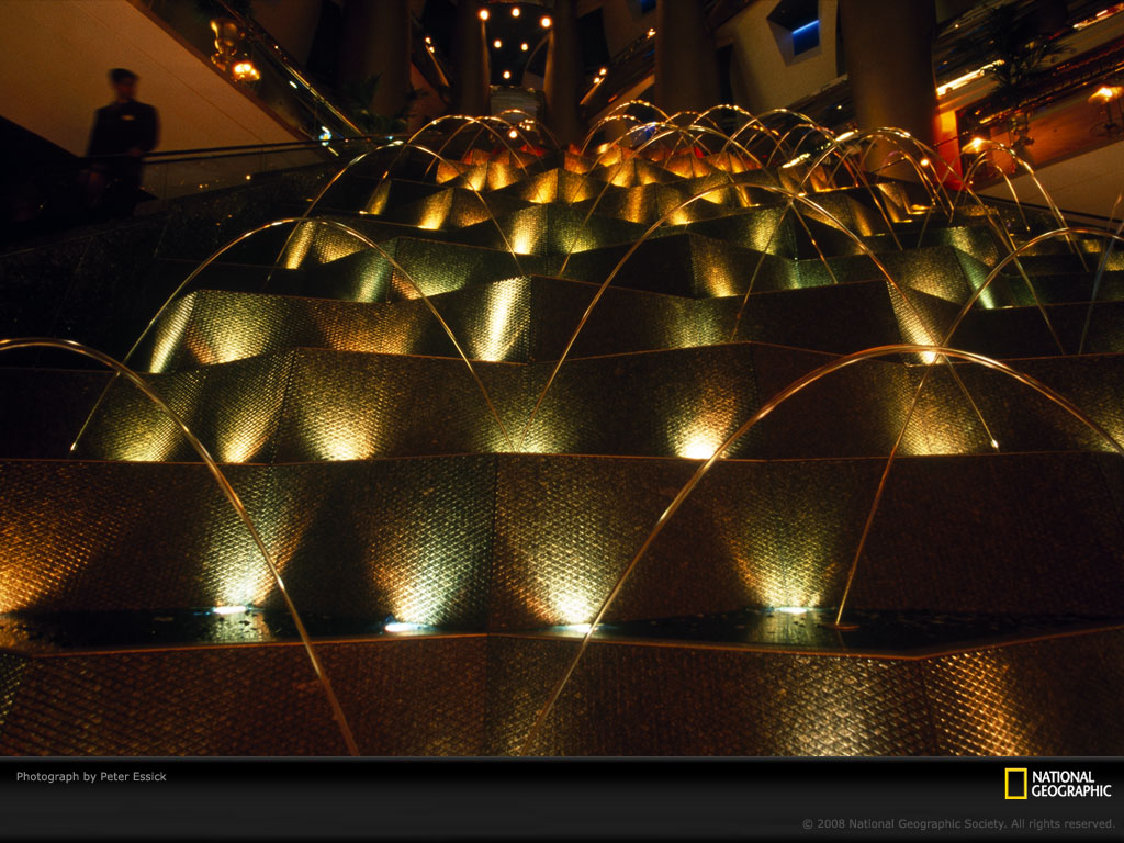 在极度干燥的迪拜,像阿拉伯塔(号称七星级的帆船酒店)这样奢华的酒店会告诉你这样一个道理:只要有足够的钱,淡水在沙漠国家也不是问题。依靠地下蕴藏着的石油,波斯湾周边国家能够实现其他水资源匮乏国家想都不敢想的事情:利用高成本的淡化海水技术来满足人们的生活用水问题。