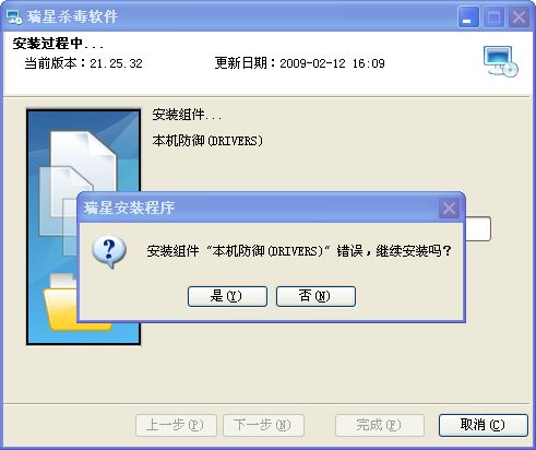 安装瑞星过程中报错,可下载木马群专杀和橙色八月专杀工具以及建立安全环境工具来查杀和修复。