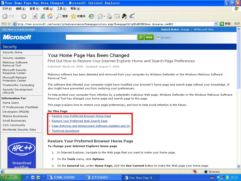 那个网址是正常的微软网址(如下图),个人怀疑你没有正确地设置IE7,可以单击下图的链接尝试一下: