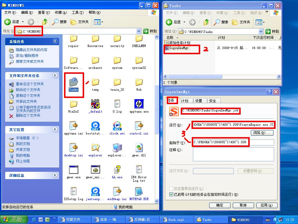 按下图操作步骤,随便找一个ATXX的计划任务,把3处的数据说一下(我图中以“搜狗拼音”计划任务为例,按图索骥即可):