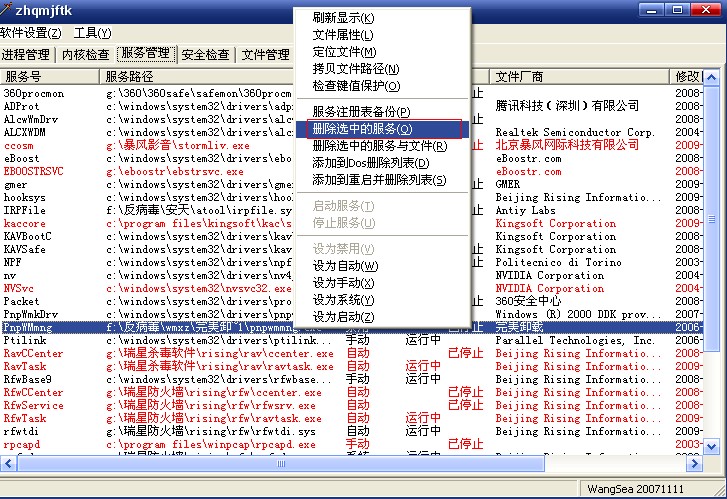 (勾选隐藏已认证的微软项目,选中有问题的驱动/服务后,点"删除服务",点"设置"按钮即可。注意弹出的窗口中要点"否"才是确认删除服务)