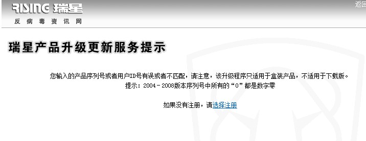 今天升级瑞星防火墙时升级出现问题,应该如何处理,求助了!