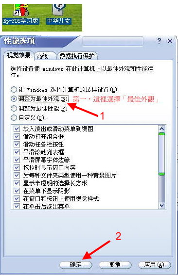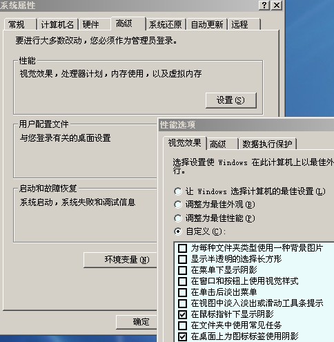 右键点击【我的电脑】【属性】【高级】选项卡下的性能,你点【设置】,然后在视觉效果这里,找到这个下拉菜单,把【在桌面上为图标标签使用阴影】的对勾打上然后点确定就可以了