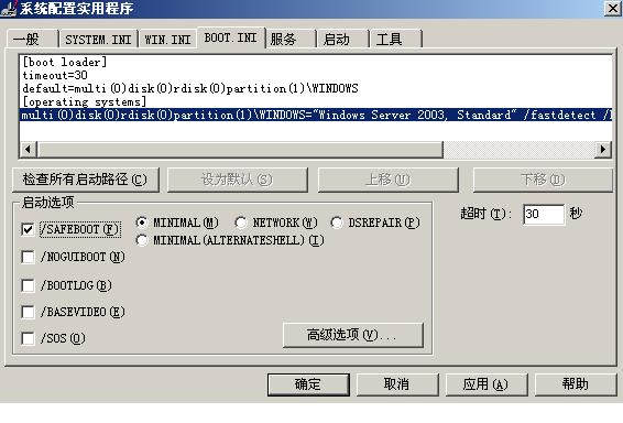 安全模式: (这是纯安全模式,除了加载一些系统必要的程序以外,其他程序是不加载的)