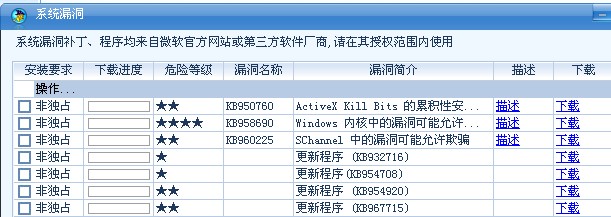 卡卡这个软件能否智能些,别的类似软件都做到了不用关闭其它监控来补漏洞,补过的漏洞不会再显示出来。