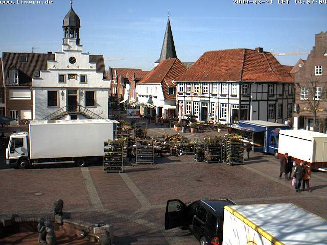 呵呵,今天是星期六,Lingen那里有周末市场,很热闹!在那里的时候,一有这样的我就喜欢去逛,能买到一些很新鲜的水果和蔬菜,鲜花也很便宜。这是刚刚抓下来的。