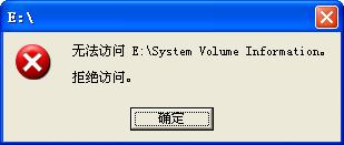 如果双击c:\windows\system32这个目录出现下图,说明该文件夹所在分区为NTFS格式,且当前用户帐户没有被赋予访问该文件夹的权限(我的C盘是FAT32格式的,因此用E盘做示范):