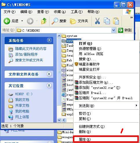 一、找到c:\windows\system32这个文件夹,右键选择属性: