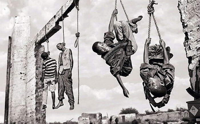 在处决俘虏的绞索上玩耍。【xxx非洲儿童的另一种快乐】