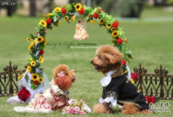 好可爱,狗都有婚纱啊,美死它了