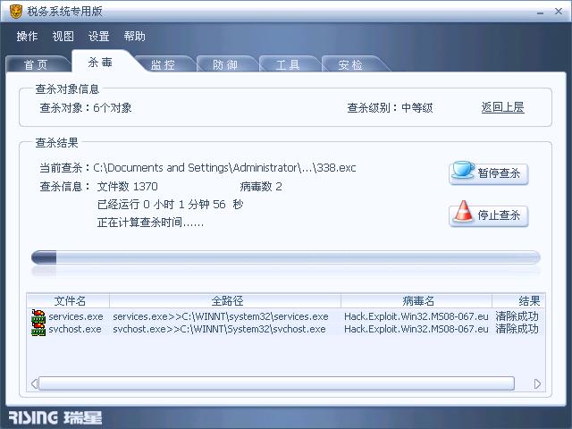 这是杀毒的时候的截图,X病毒还没有杀到呢,只截了这一点