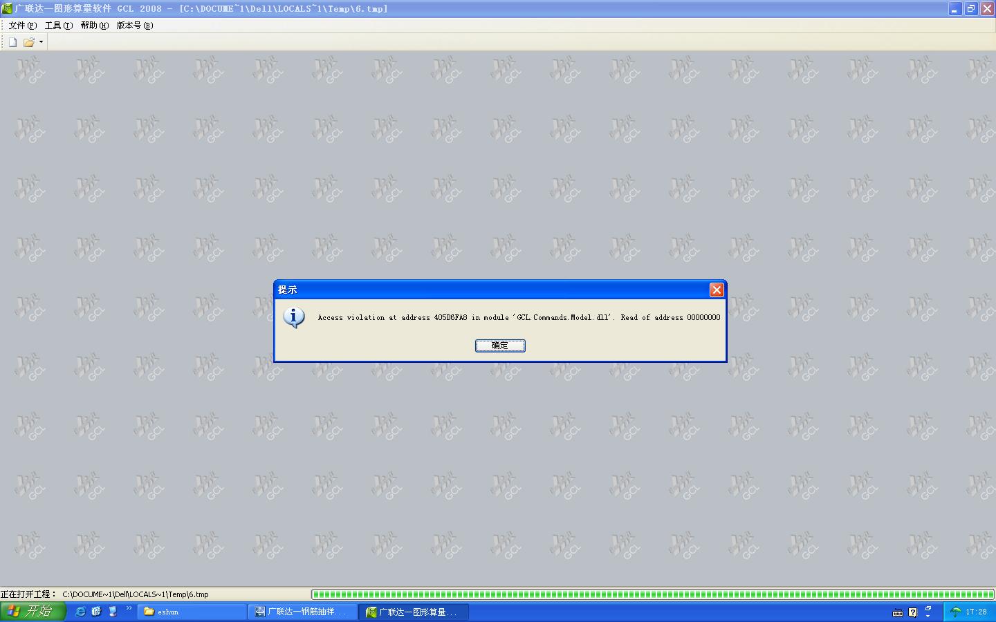 新建工程完后就会弹出地一幅图片的错误“Access violation at address 405D6F2C in module 'GCL