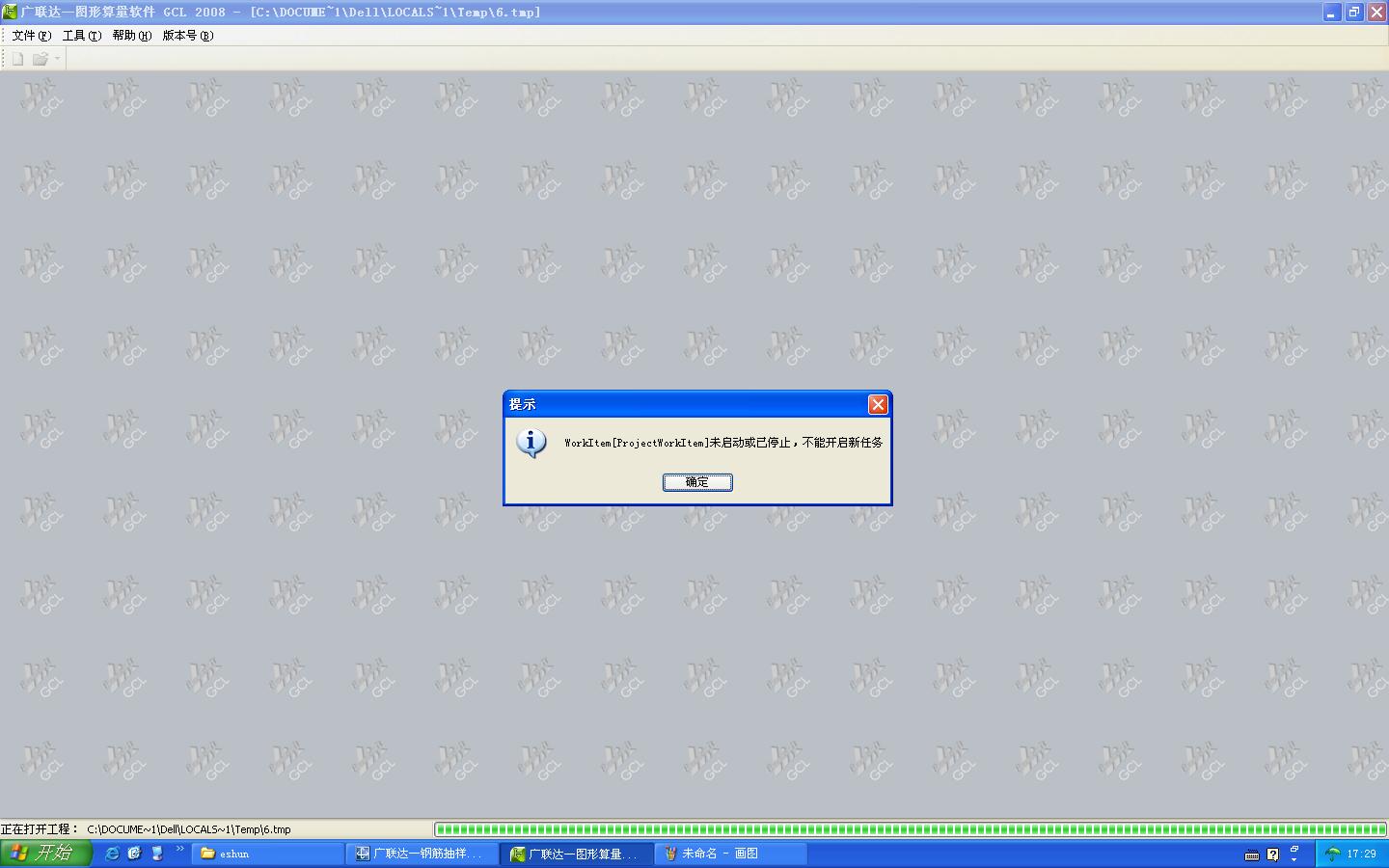 点确定后该提示框消失,但是不能使用软件,选择退出,弹出第二幅图片的错误“WorkItem