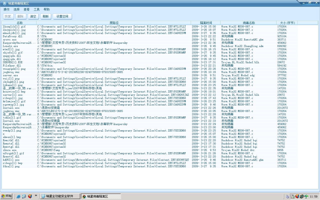 用瑞星2009查杀,每次能杀好个,杀了又有,杀了又来。