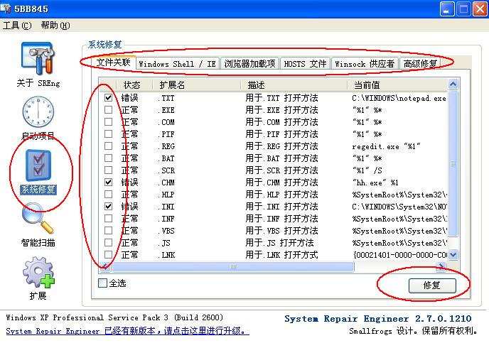 :default2: 就是楼上的那个,楼主多研究一下吧,但最后一个“高级修复”建议你不要乱搞哦