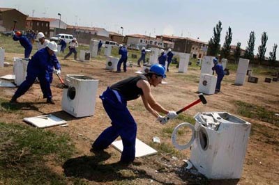 以前看过网上说有夫妻为了奥运会刘翔是真退赛还是假退赛吵架,然后砸家具的;有夫妻为了买只鸡吃是不是浪费行为而吵架砸家具的。我还觉得挺好笑,鬼能想到前几天这悲剧竟然被我们家撞上了,我老公就因为和我绊了几句嘴,让我们家的高脚凳和洗衣机来了个亲密接触,真是倒霉催的,现在看来还真得脸上积德,少幸灾乐祸。