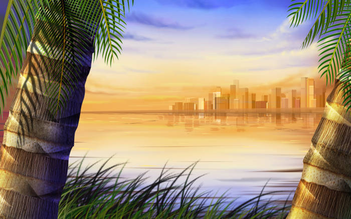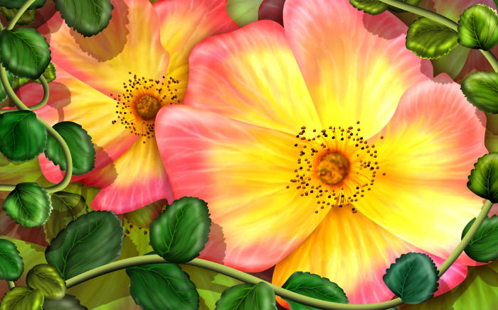 手绘炫彩动植物风光