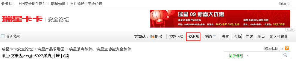 在使用瑞星时,有时会出现安装、升级提示序列号和ID号不匹配,过期,无法激活这些问题,论坛里,大家可以直接通过论坛短消息联系美女工程师(