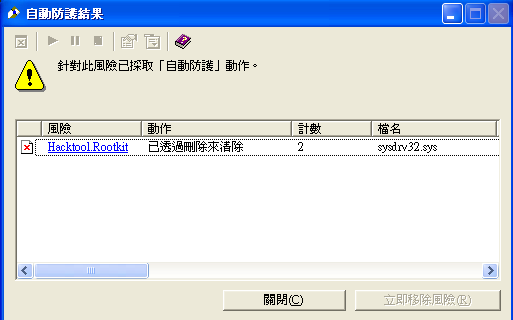 3 瑞星杀毒软件查出是 hacktool.rootkit 的病毒, 但是无法杀掉