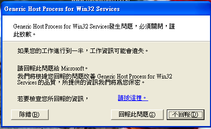 4 windows xp 下 系统报错 generic host process for win32 services 的错误