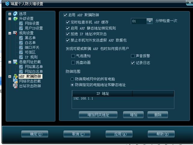 目前我现在只有关闭了瑞星的防火墙 下载别的ARP 他们才可以上网