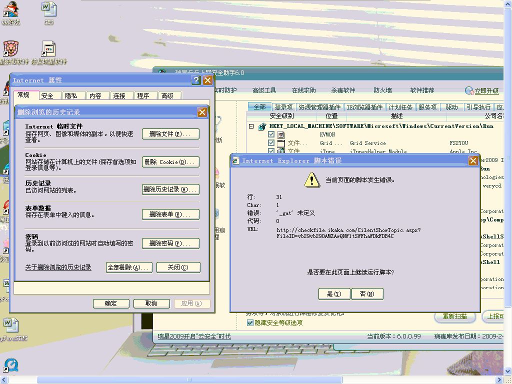 按否之后,清理IE缓存,然后用卡卡修复一下,重启之后打开那个页面试试
