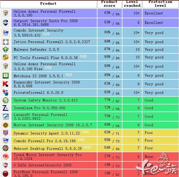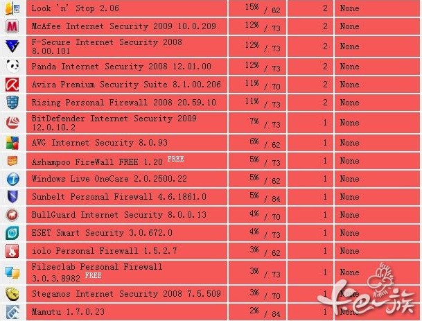 在卡巴论坛找的,说是世界权威实验室的评测结果,是最有权威的,我们国家的中网S3也排名不错在第八名,而且是免费的,瑞星是收费的难到还比不上一个免费的中网S3,