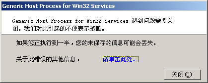解决WINXP系统开机后弹出Generic host process for win32 services 遇到问题需要关闭!
