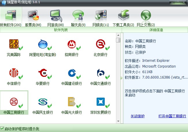 用账号保险箱保护下,工商银行输入账号,密码还有验证码后,登录时总提示“密码不能少于4位”,关了保险箱再登陆就没有问题。建设银行登录页没有问题,估计是保险箱和工行不太兼容,希望工程师们能修复下