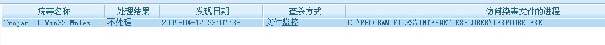 病毒名称 处理结果 查杀方式 访问染毒文件的进程 文件