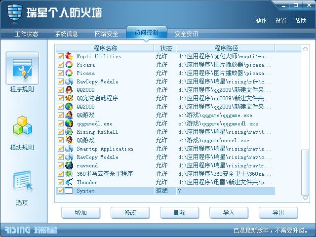 我的情况和楼主一模一样,system进程不停地试图访问网络。昨天我记得访问的是北京的一个IP,刚才想关机前又出现了,是杭州的两个IP,而且有几个用的是80端口,其中某个是2023端口,被提示是某个木马所使用的端口。这下可让我紧张了,但是瑞星无法查到病毒,而且卡卡安全助手的进程管理里也是看不到这个SYSTEM进程。