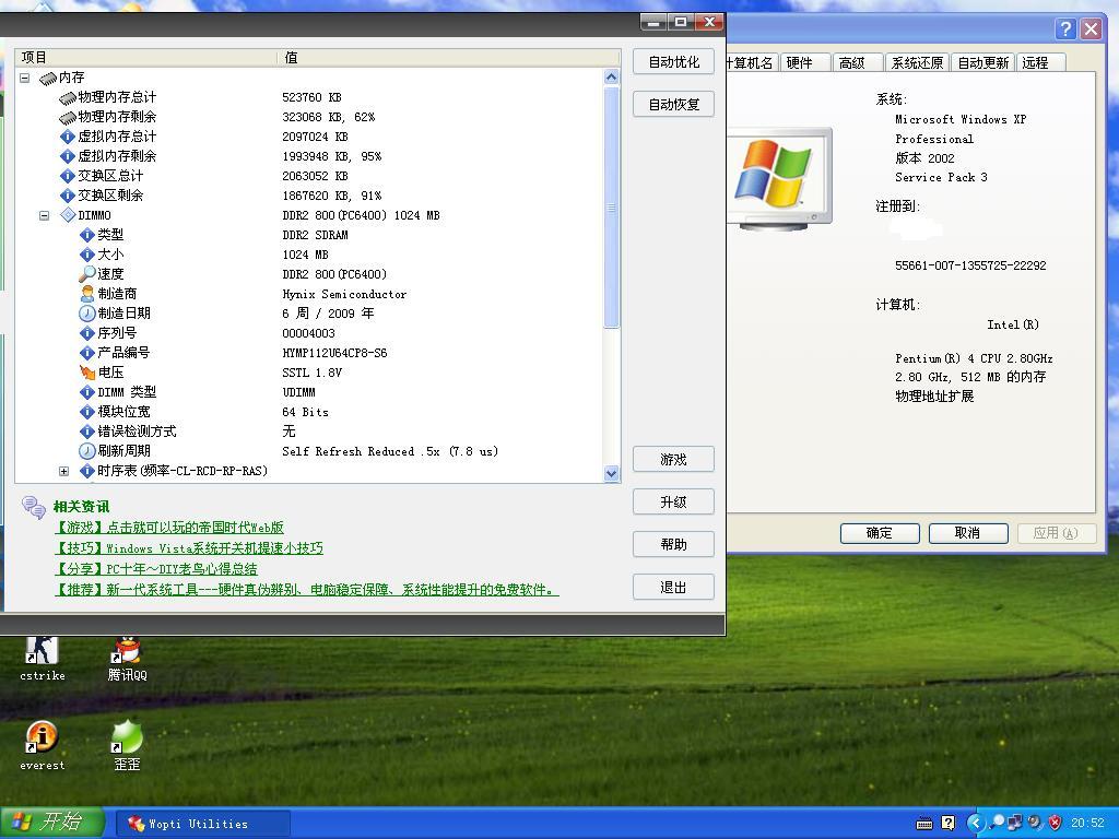 为什么呢~~~~ 1G800的条子 认不出来 只能认出来 512MB 条子是单面的 超胜 1G 800