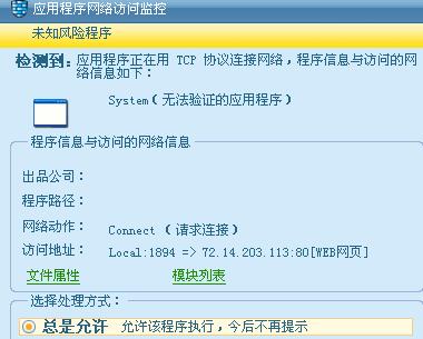 防火墙提示system访问网络,程序路径没有。