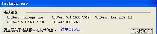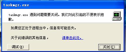 今天打了xp四月份的安全更新,结果任务管理器一打开就是:遇到错误需要关闭。。。。