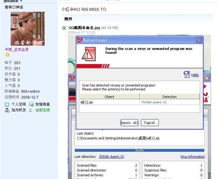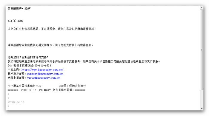 病毒上报邮件分析结果-流水单号 : 20090417130151343846