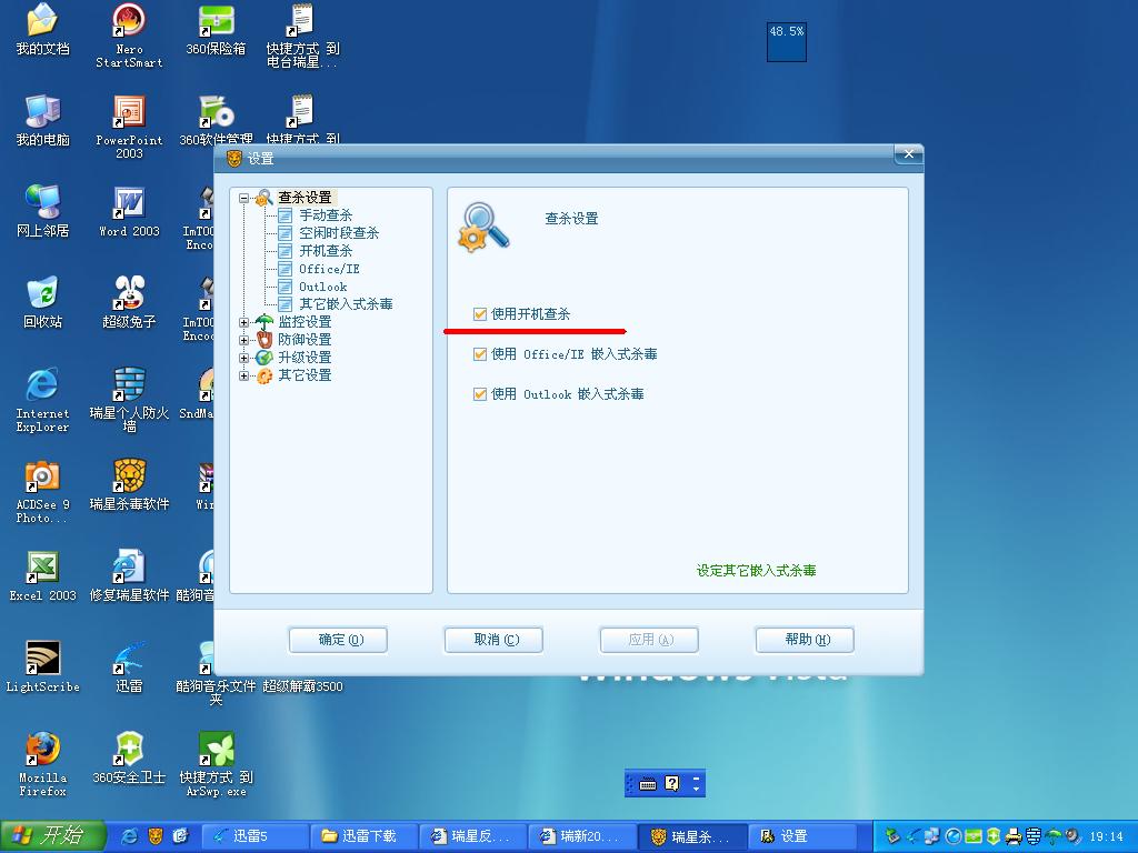 万事达:请在瑞星软件/设置/详细设置/其他设置中,设置排除目标。