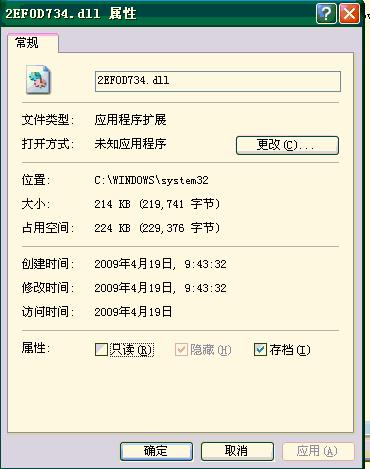 鉴定可疑文件:首先搜索出来的文件,与WSyscheck在Explorer.exe里进程模块中列出来的对比一下,如果搜索出来的有EXE的文件,则查看他的属性,看看有没有版本信息,并且创建/修改时间是否和其它可疑文件是一致,如果没有版本信息,且创建时间一致,则一般都是可疑文件了:default6: