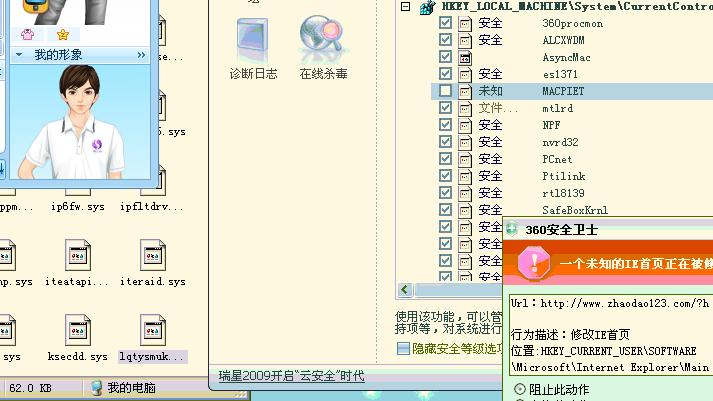 PS:一般建议远程,或者是其它,建议首先结束掉可疑的进程,然后再处理掉可疑的DLL文件。因为EXE和DLL文件是最好处理的。下面将说明的是:结束掉可疑EXE程序及将可疑的DLL程序都重命名后,使用瑞星卡卡安全助手的启动项管理检查可疑的启动项,及发现病毒创建的驱动。