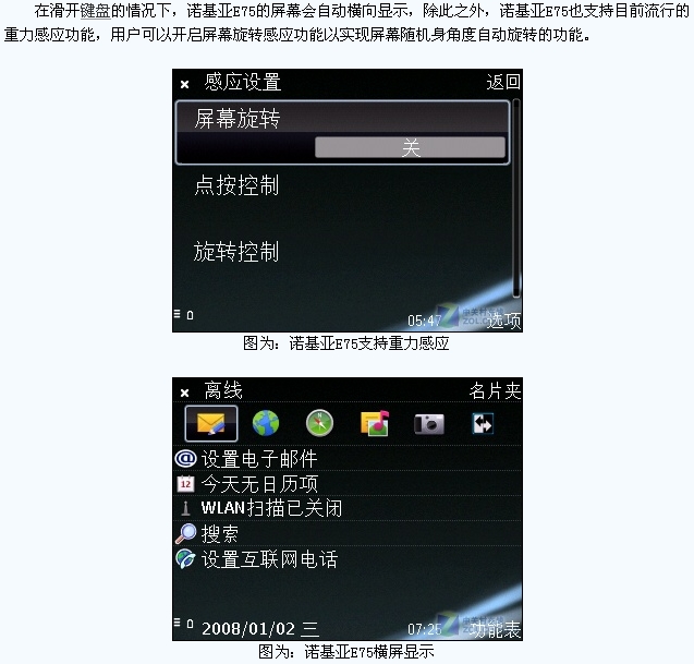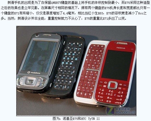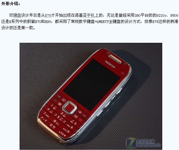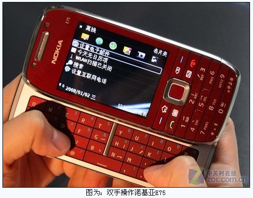 由于诺基亚E71的热卖,所以原本定位相对小众商务人士的E系列产品(包括E71、E63)却在国内市场上赢得了相当程度的欢迎,诺基亚也相继推出了白色、黑色和红色四种颜色的E71来满足狂热的消费者。而在今年2月份西班牙举行的MWC大展上,诺基亚推出的新机E55和E75也得到了前所未有的关注。这两款产品在键盘上大做文章,E55采用了类似索尼爱立信M608c的Sure-type键盘,E75则开始使用类似多普达C730的侧滑双键盘设计,和同样拥有全键盘的E70、E71各呈一派。
