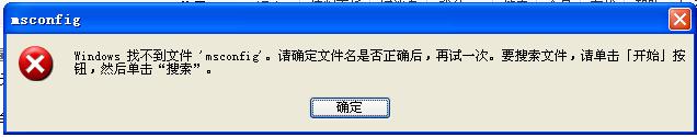 在运行栏里输入msconfig系统提示找不到文件(如图)