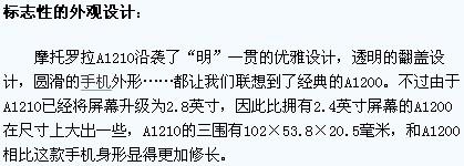 就像501对于Levi’s、格子衫对于Burberry一样,经典是历久弥新的。而对于手机来说,虽说应经成为快速消耗品,但是经典同样让人记忆犹新。摩托罗拉算是手机界的老牌厂商了,而细数摩托罗拉近些年成功的机型也不胜枚举,但是相信其中有两款手机一定会引起很多“机油”的共鸣,一款是V3,而另一款是“明”A1200。